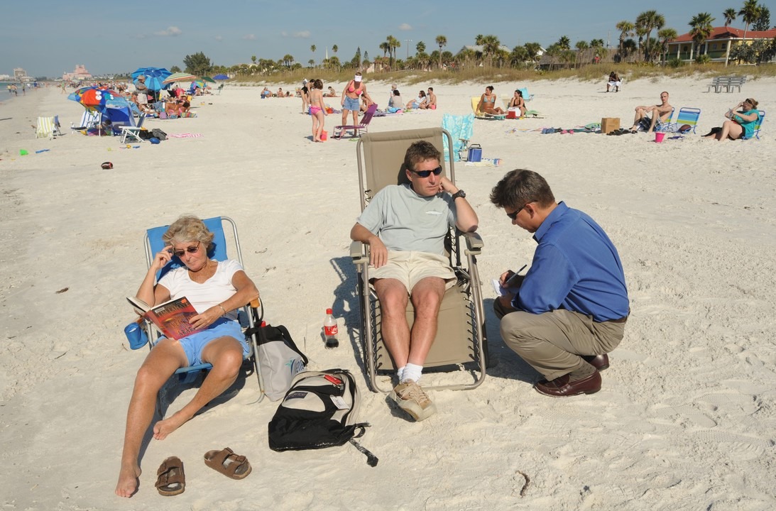 Interviewing beach-goers on St. Pete Beach for The Tampa Tribune.
